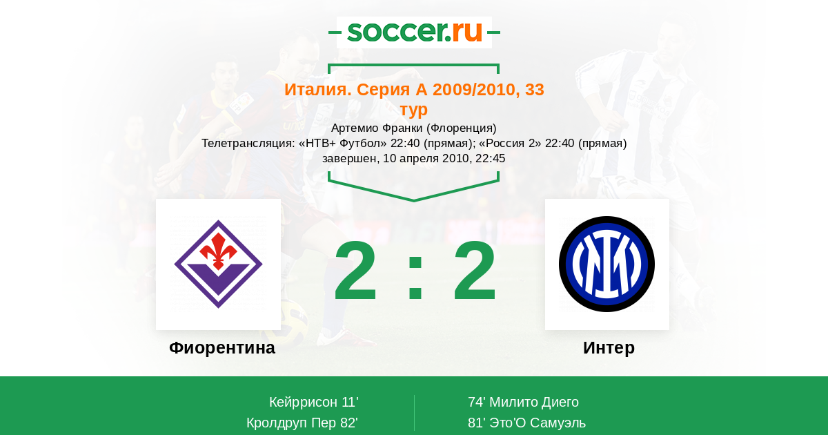 Протокол матча Фиорентина против Интер