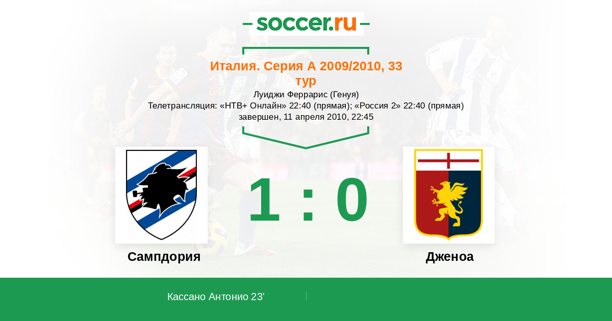 Протокол матча Сампдория против Дженоа