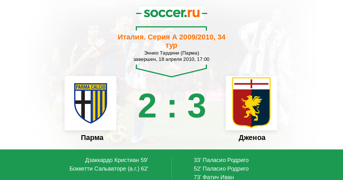 Протокол матча Парма против Дженоа