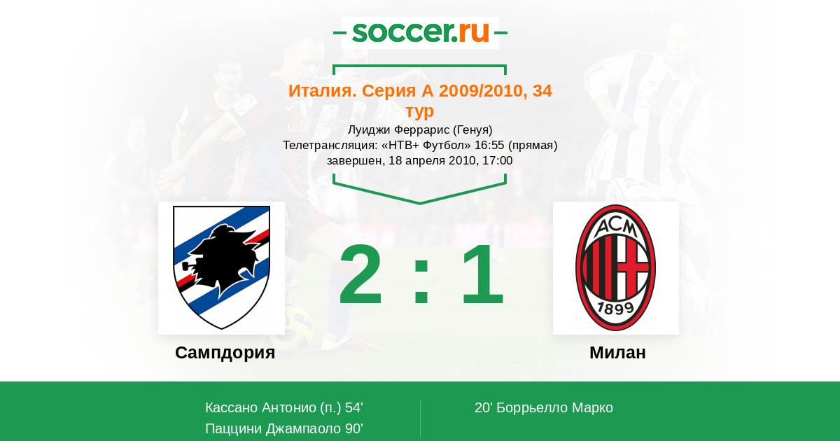 54' (1:1) Кассано Антонио (99)