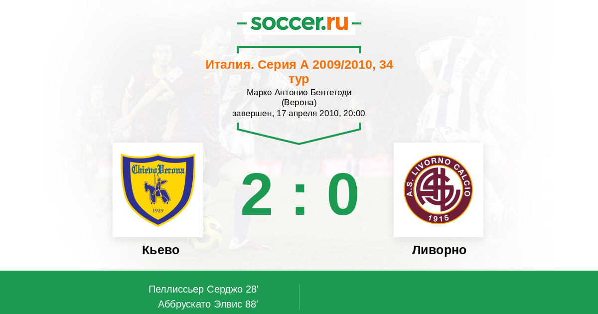 Протокол матча Кьево против Ливорно