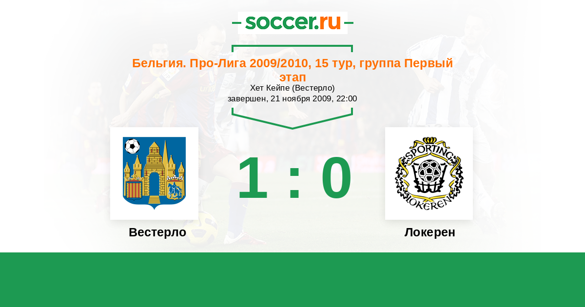 Бельгия. Про-Лига 14.04.2010 Вестерло Логотип футбольный клуб Вестерло 2:0 Логотип футбольный клуб Локерен Локерен