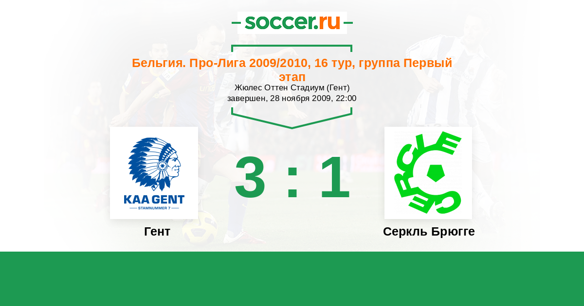 Бельгия. Про-Лига 07.11.2010 Серкль Брюгге Логотип футбольный клуб Серкль Брюгге 0:1 Логотип футбольный клуб Гент Гент
