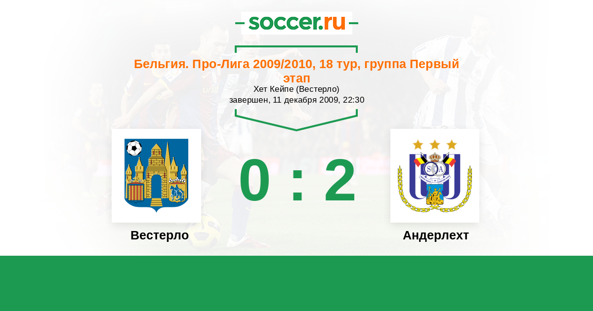 Бельгия. Про-Лига 20.02.2011 Вестерло Логотип футбольный клуб Вестерло 2:0 Логотип футбольный клуб Андерлехт (Брюссель) Андерлехт