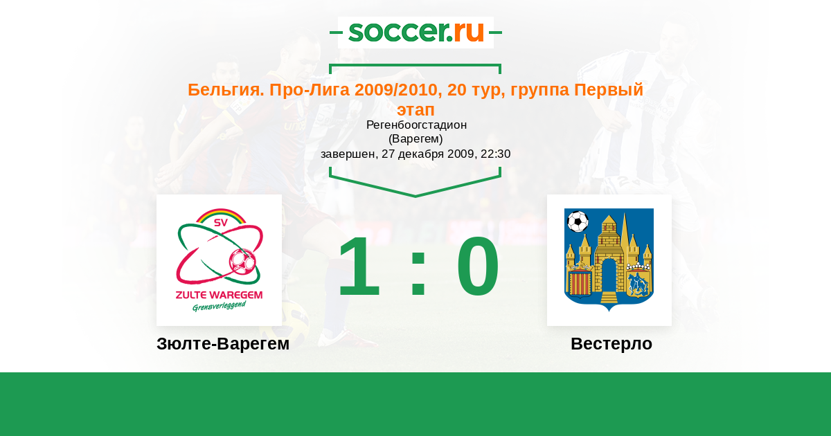 Бельгия. Про-Лига 18.12.2010 Зюлте-Варегем Логотип футбольный клуб Зюлте-Варегем 2:0 Логотип футбольный клуб Вестерло Вестерло