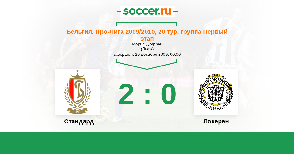 Бельгия. Про-Лига 19.09.2009 Локерен Логотип футбольный клуб Локерен 1:3 Логотип футбольный клуб Стандард (Льеж) Стандард