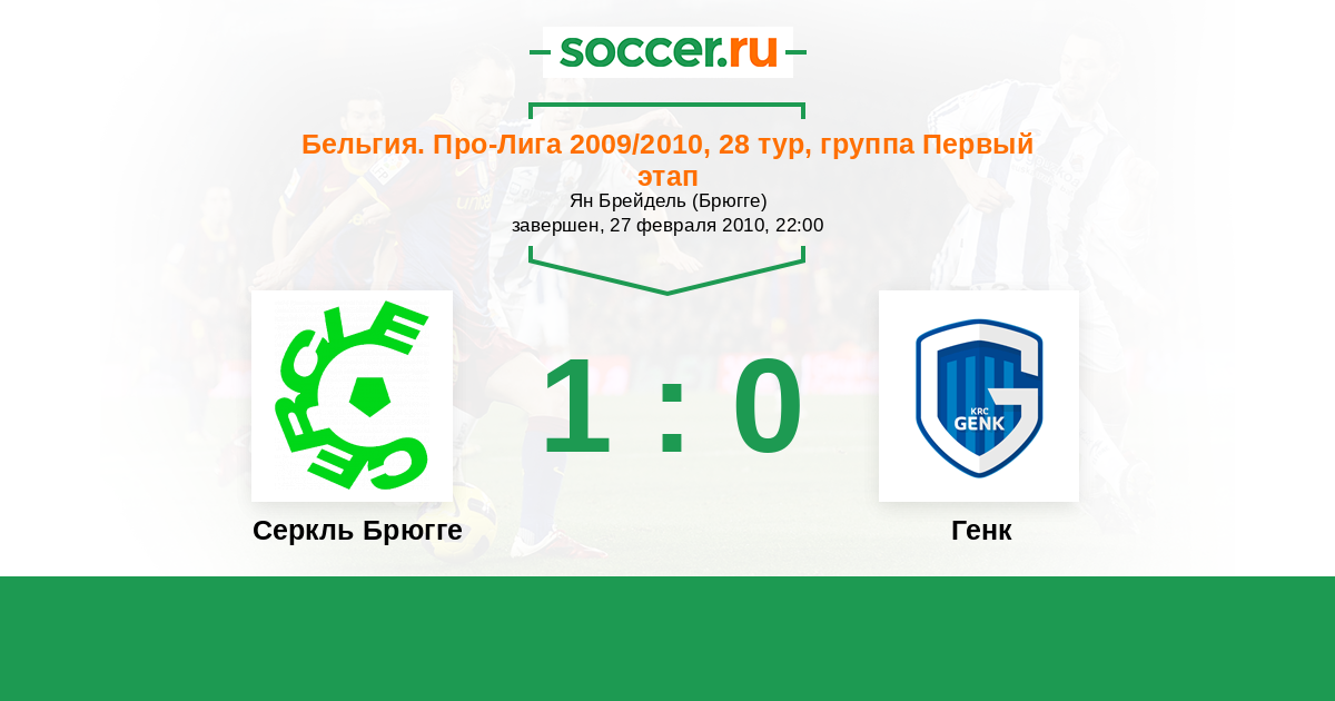 Бельгия. Про-Лига 02.11.2009 Генк Логотип футбольный клуб Генк 2:0 Логотип футбольный клуб Серкль Брюгге Серкль Брюгге
