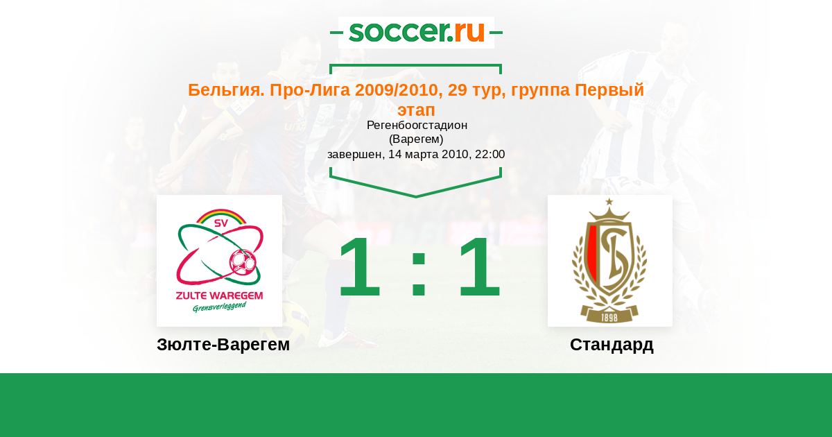 Бельгия. Про-Лига 24.10.2009 Стандард Логотип футбольный клуб Стандард (Льеж) 1:1 Логотип футбольный клуб Зюлте-Варегем Зюлте-Варегем