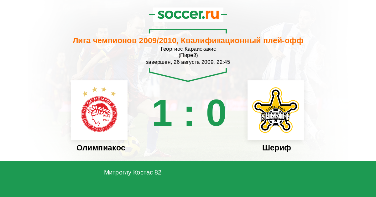 Протокол матча Олимпиакос против Шериф