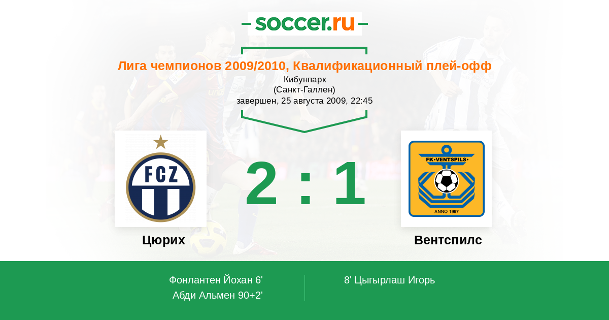 Протокол матча Цюрих против Вентспилс