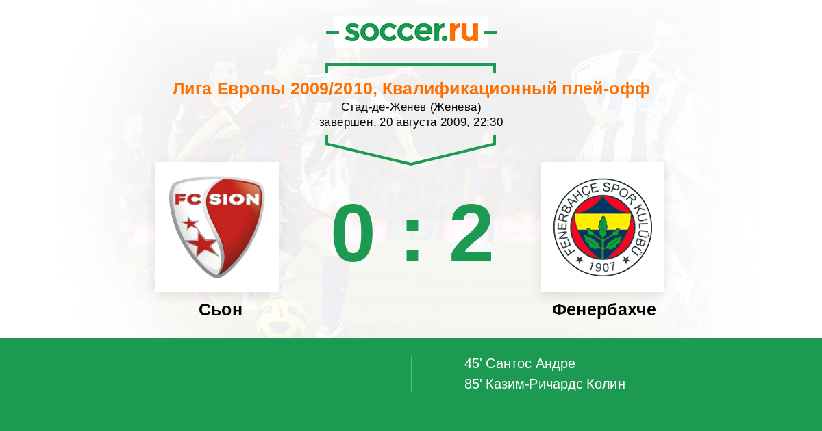 Протокол матча Сьон против Фенербахче