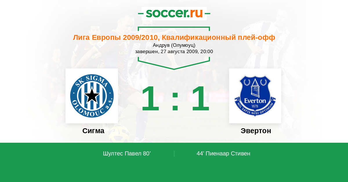 Протокол матча Сигма против Эвертон