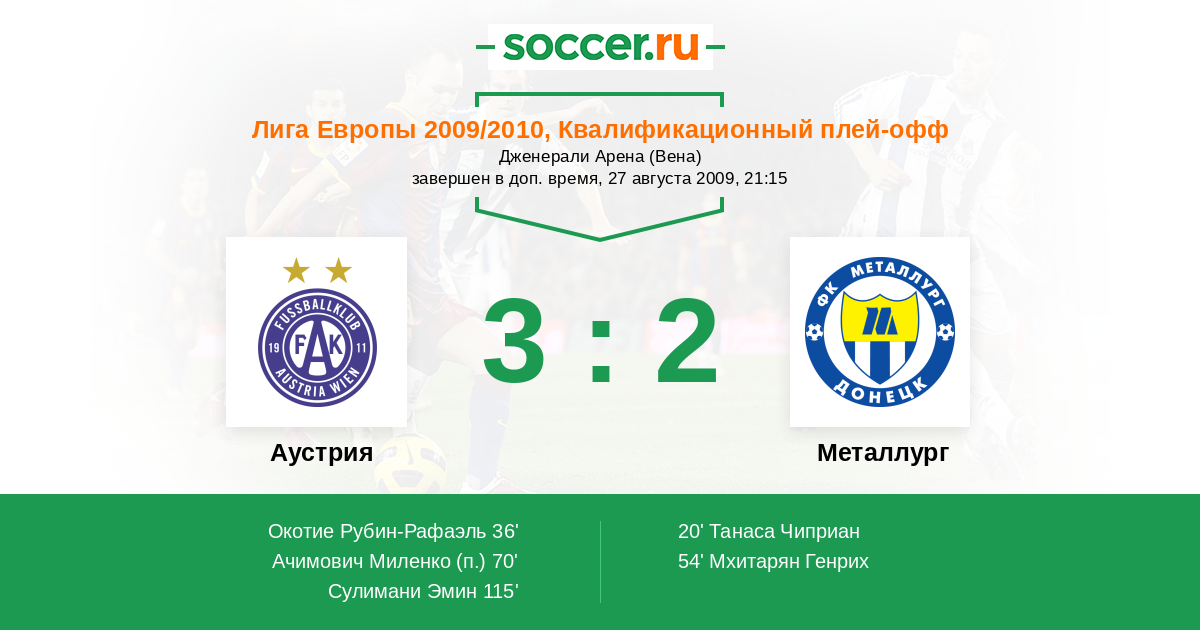Протокол матча Аустрия против Металлург