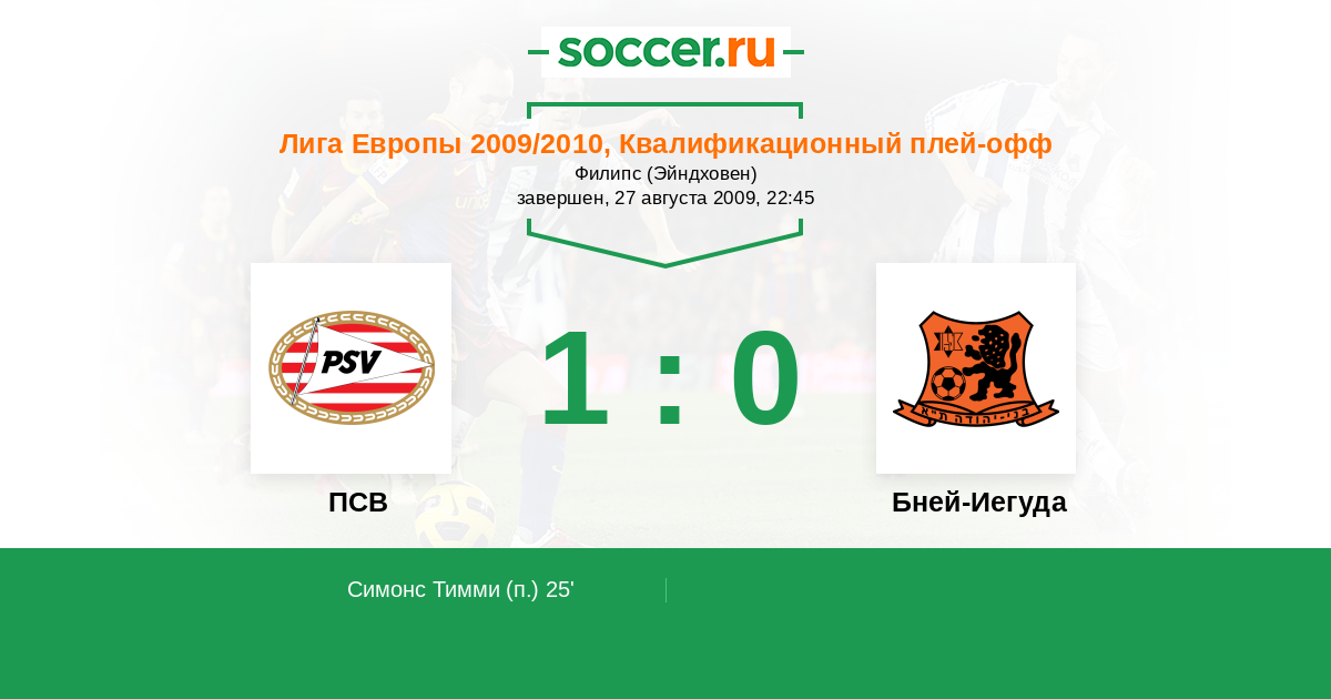 Протокол матча ПСВ против Бней-Иегуда