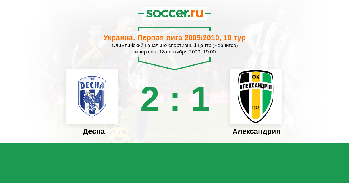 Украина. Первая лига 02.05.2010 Александрия Логотип футбольный клуб Александрия 1:1 Логотип футбольный клуб Десна (Чернигов) Десна
