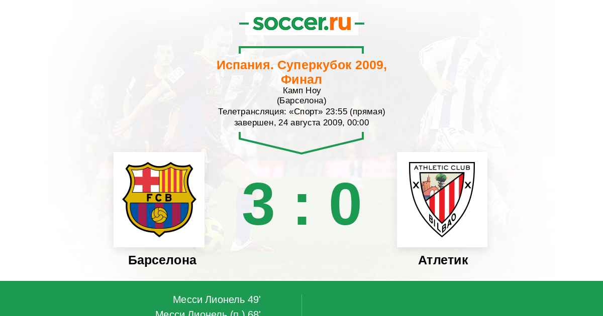 Протокол матча Барселона против Атлетик