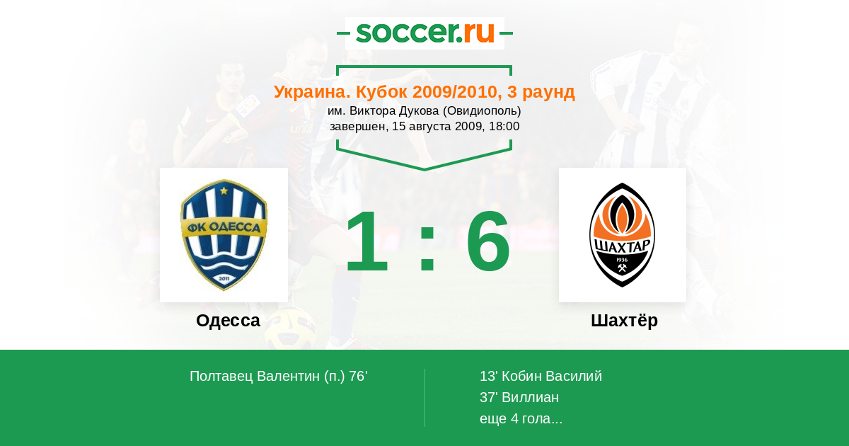 Протокол матча Одесса против Шахтёр