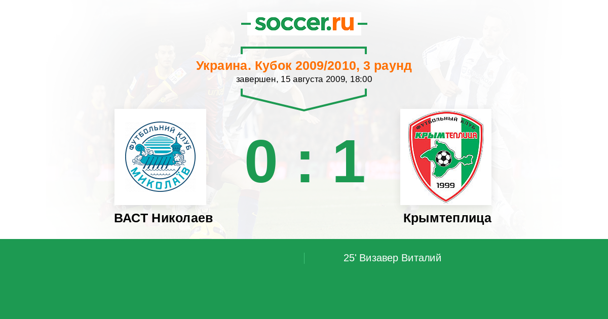 Протокол матча ВАСТ Николаев против Крымтеплица
