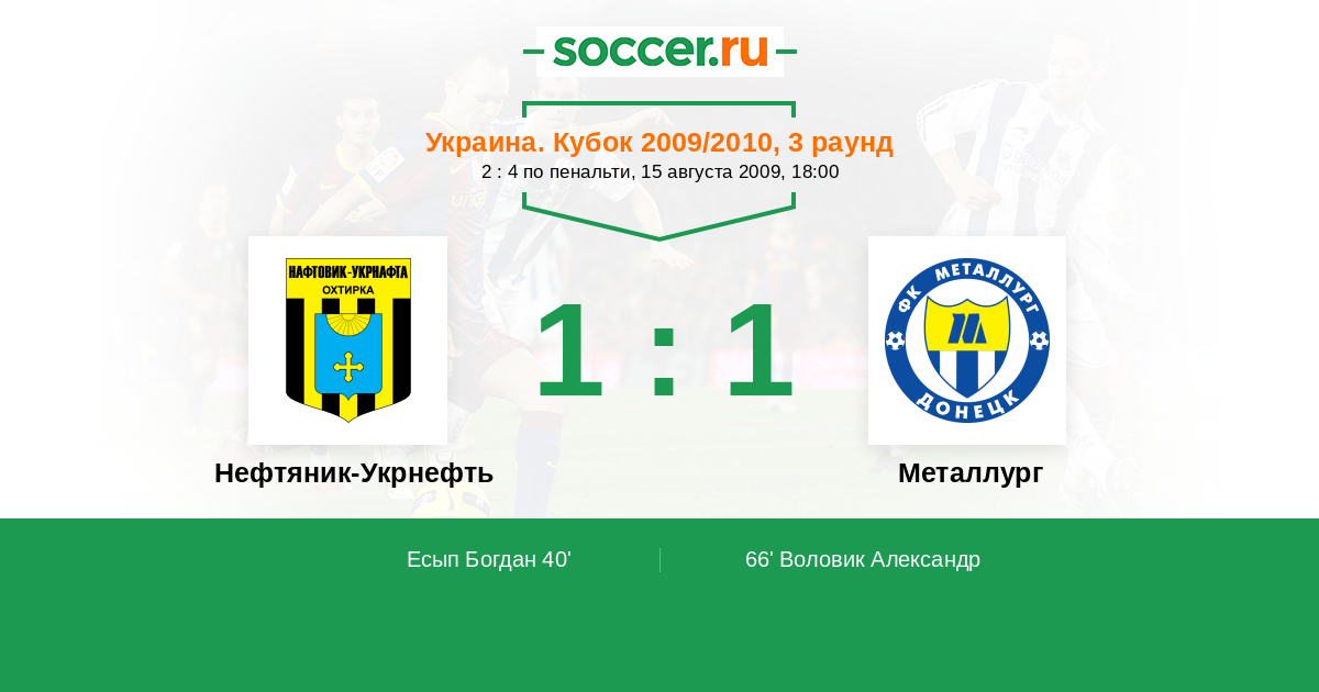 Протокол матча Нефтяник-Укрнефть против Металлург