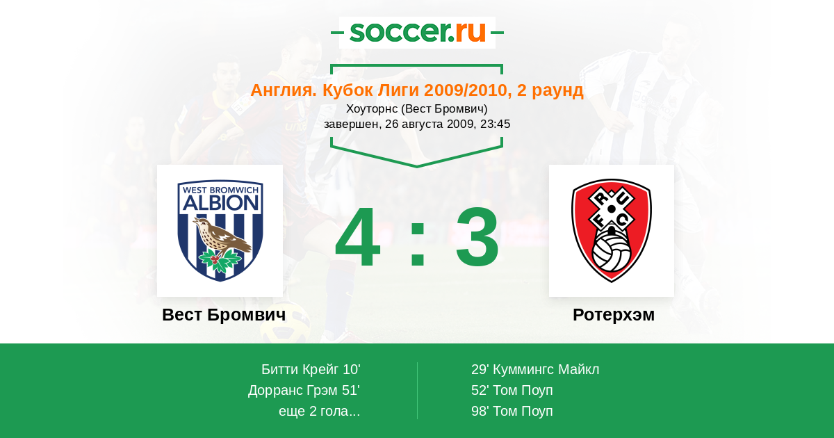 Протокол матча Вест Бромвич против Ротерхэм