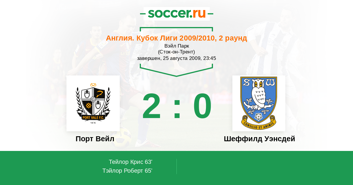 Протокол матча Порт Вейл против Шеффилд Уэнсдей