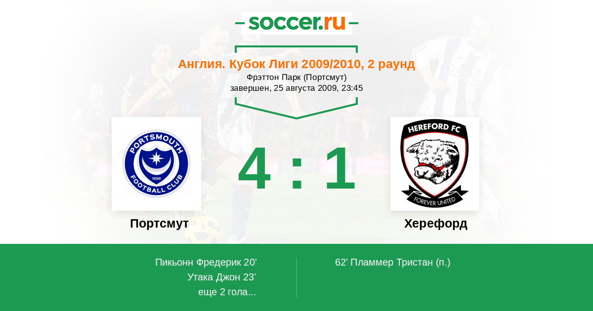 Протокол матча Портсмут против Херефорд