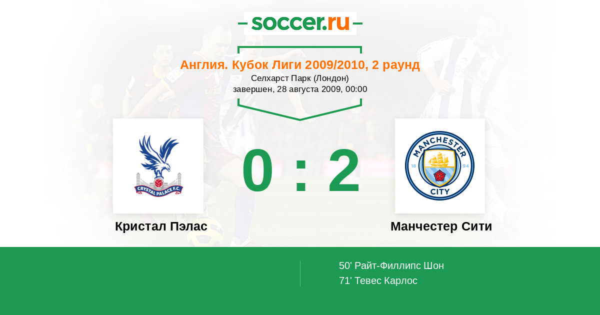 Протокол матча Кристал Пэлас против Манчестер Сити