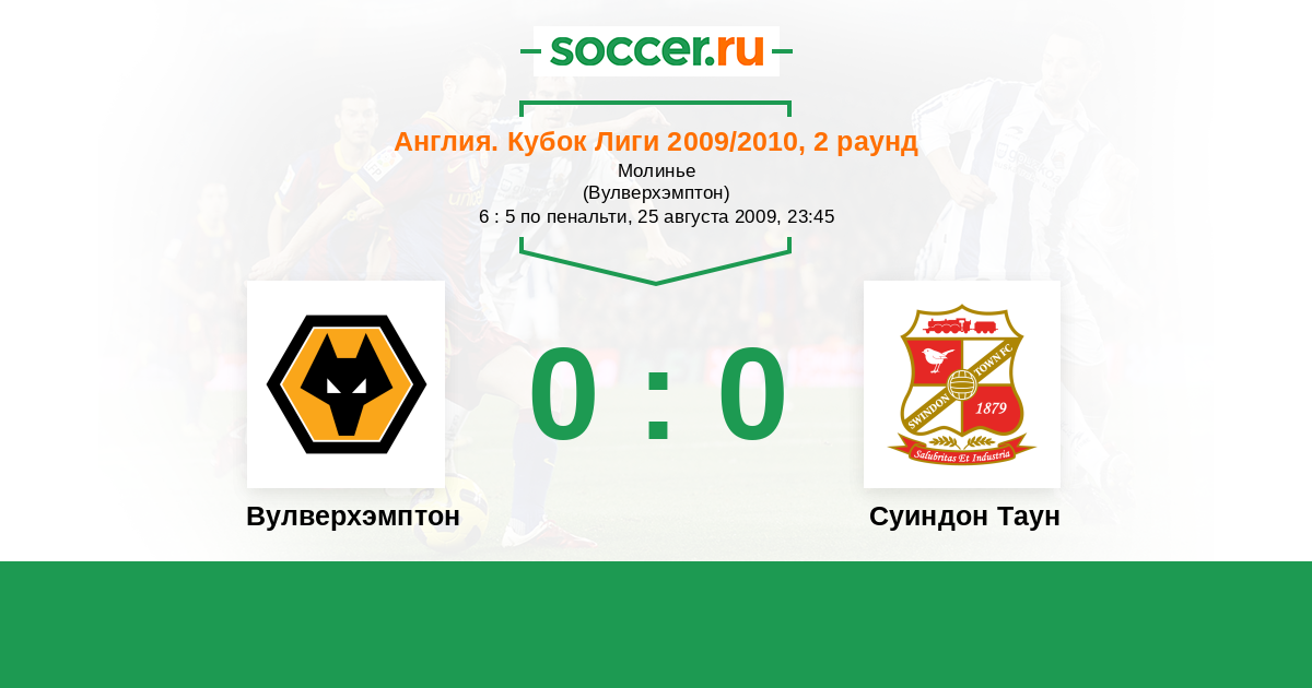 Протокол матча Вулверхэмптон против Суиндон Таун