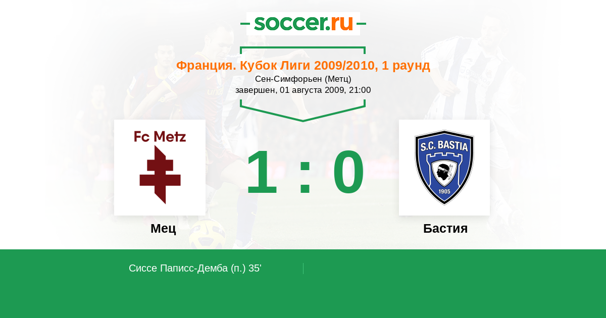 Протокол матча Мец против Бастия
