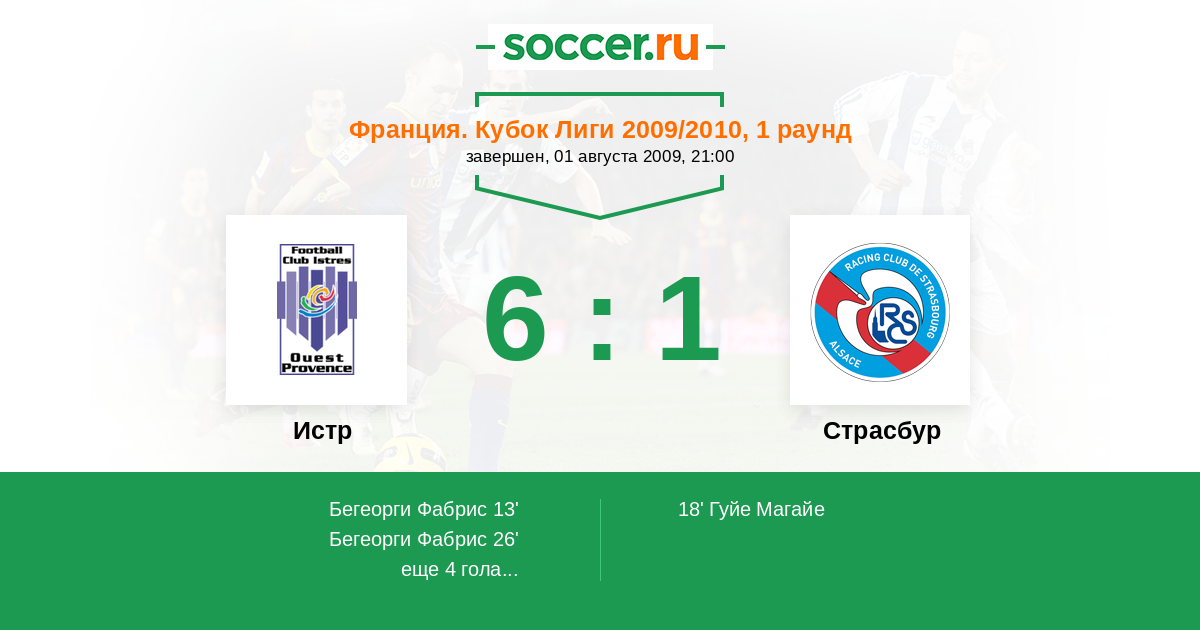 Протокол матча Истр против Страсбур