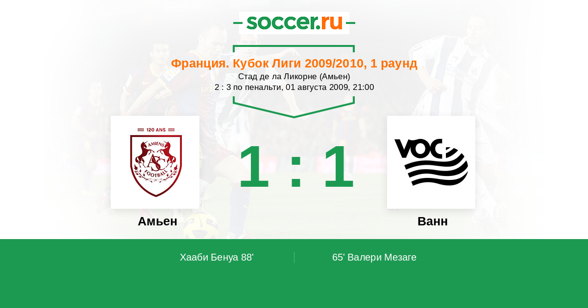 Протокол матча Амьен против Ванн