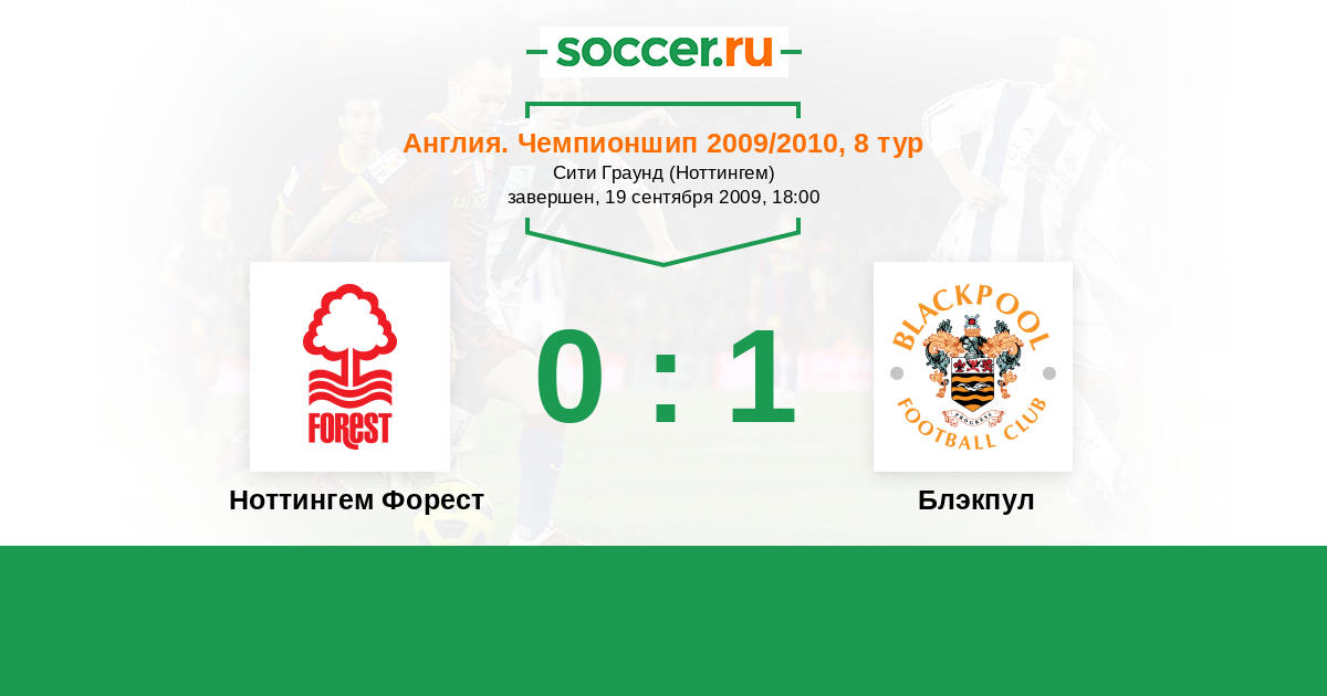 Англия. Первая Футбольная Лига 07.08.2006 Блэкпул Логотип футбольный клуб Блэкпул 0:2 Логотип футбольный клуб Ноттингем Форест Ноттингем Форест