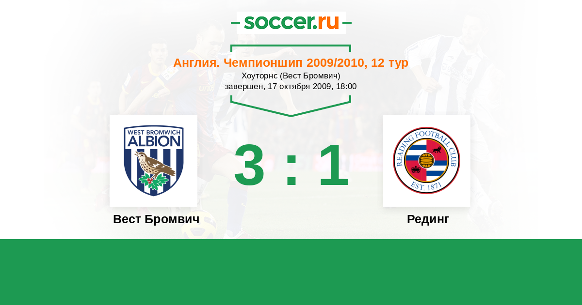 История матча Вест Бромвич против Рединг