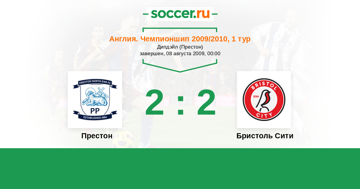 Англия. Чемпионшип 04.04.2009 Бристоль Сити Логотип футбольный клуб Бристоль Сити 1:1 Логотип футбольный клуб Престон Престон
