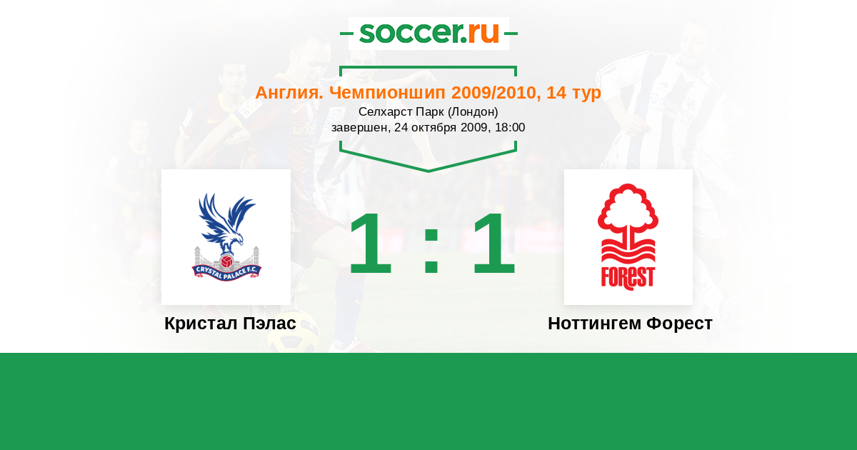 Англия. Чемпионшип 23.03.2010 Ноттингем Форест Логотип футбольный клуб Ноттингем Форест 2:0 Логотип футбольный клуб Кристал Пэлас (Лондон) Кристал Пэлас