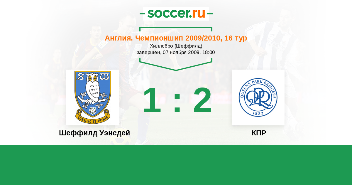 Англия. Чемпионшип 03.04.2010 КПР Логотип футбольный клуб КПР (Лондон) 1:1 Логотип футбольный клуб Шеффилд Уэнсдей Шеффилд Уэнсдей