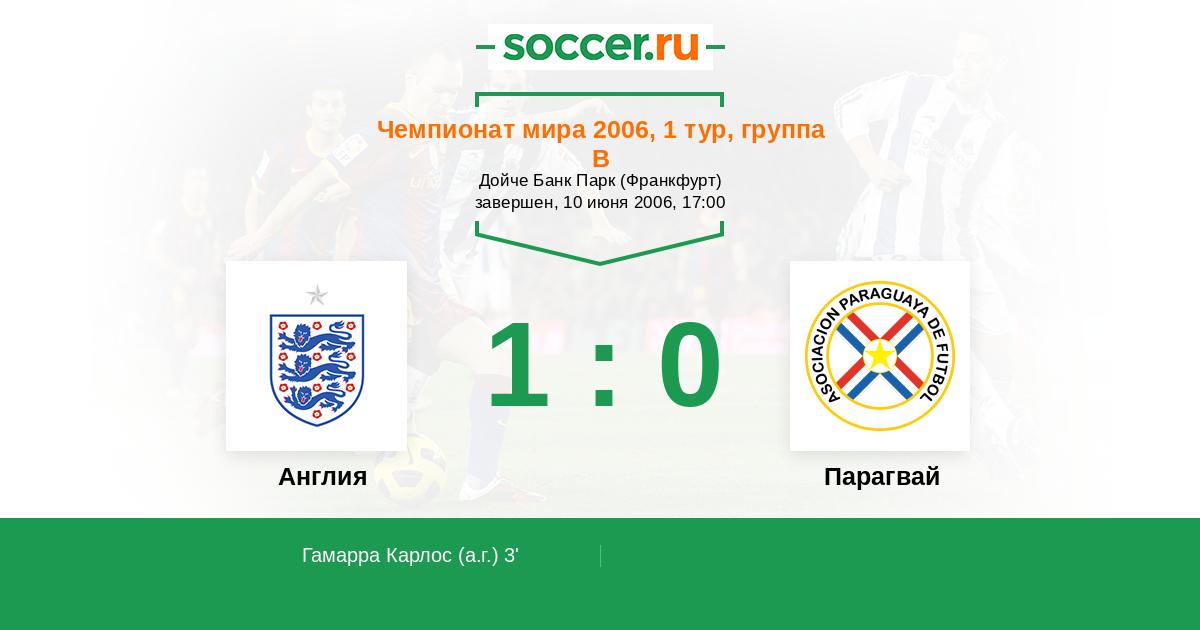 Протокол матча Англия против Парагвай