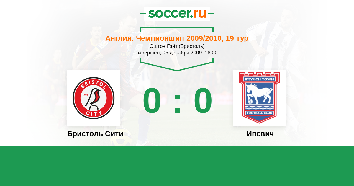 Англия. Чемпионшип 27.02.2010 Ипсвич Логотип футбольный клуб Ипсвич 0:0 Логотип футбольный клуб Бристоль Сити Бристоль Сити