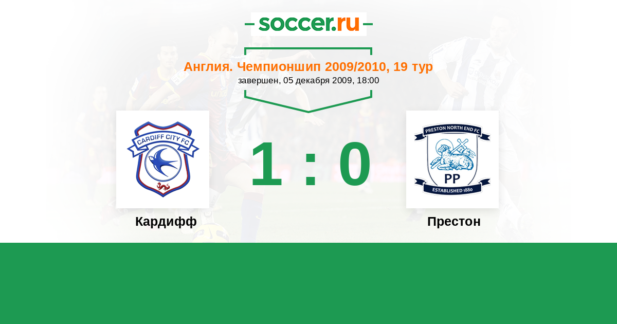 Англия. Чемпионшип 27.02.2010 Престон Логотип футбольный клуб Престон 3:0 Логотип футбольный клуб Кардифф Кардифф