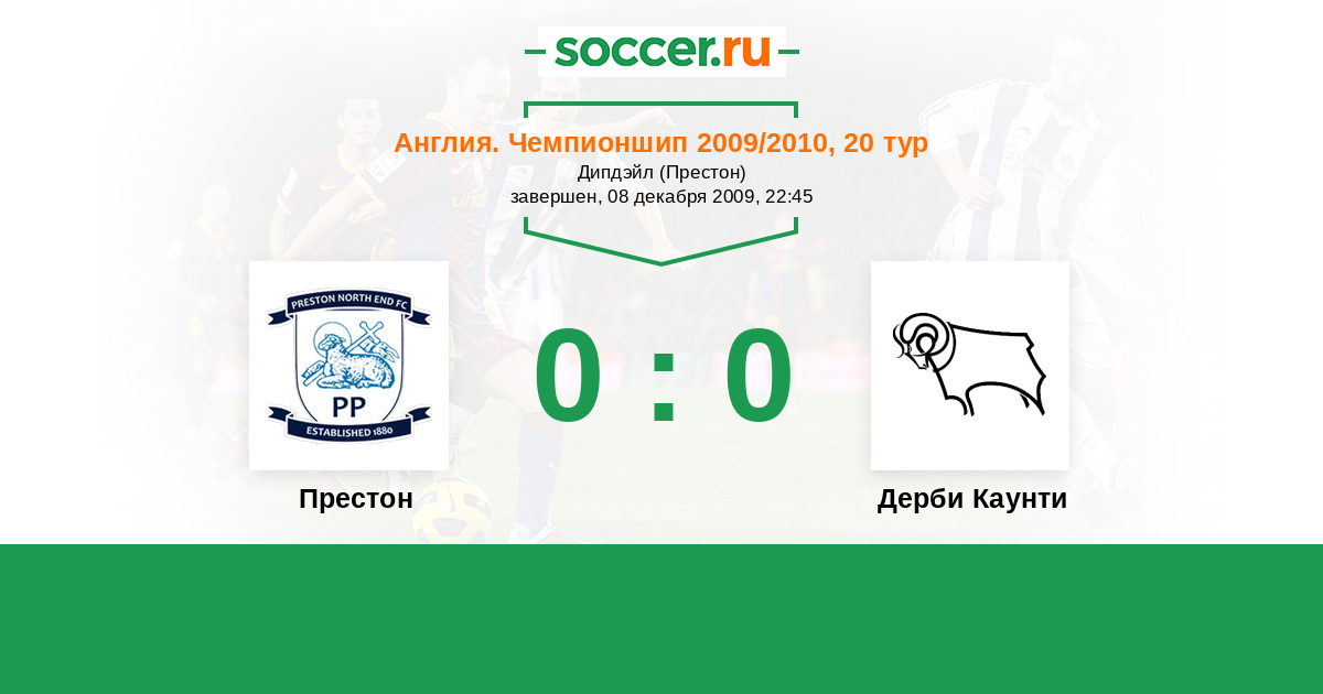 Англия. Чемпионшип 26.12.2008 Престон Логотип футбольный клуб Престон 2:0 Логотип футбольный клуб Дерби Каунти Дерби Каунти