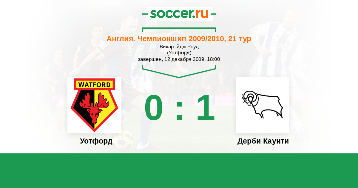 Англия. Чемпионшип 06.03.2010 Дерби Каунти Логотип футбольный клуб Дерби Каунти 2:0 Логотип футбольный клуб Уотфорд Уотфорд