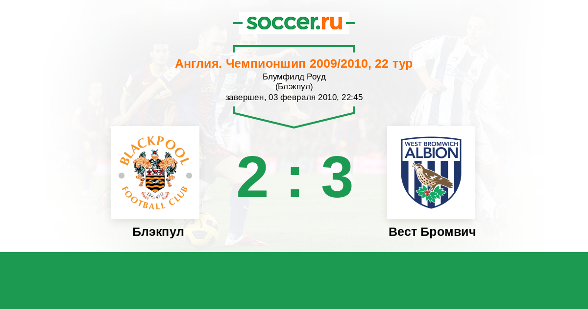 История матча Блэкпул против Вест Бромвич
