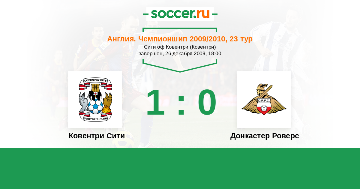 Англия. Чемпионшип 18.08.2009 Донкастер Роверс Логотип футбольный клуб Донкастер Роверс 0:0 Логотип футбольный клуб Ковентри Сити Ковентри Сити