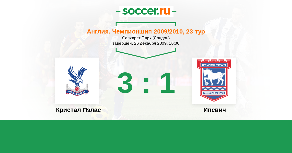Англия. Чемпионшип 18.08.2009 Ипсвич Логотип футбольный клуб Ипсвич 1:3 Логотип футбольный клуб Кристал Пэлас (Лондон) Кристал Пэлас