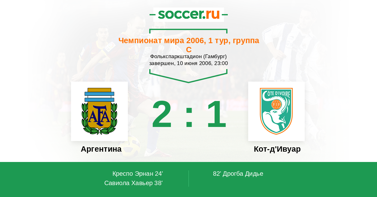 Протокол матча Аргентина против Кот-д'Ивуар