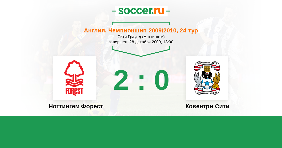 Англия. Чемпионшип 09.02.2010 Ковентри Сити Логотип футбольный клуб Ковентри Сити 1:0 Логотип футбольный клуб Ноттингем Форест Ноттингем Форест