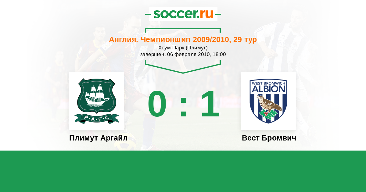 История матча Плимут Аргайл против Вест Бромвич