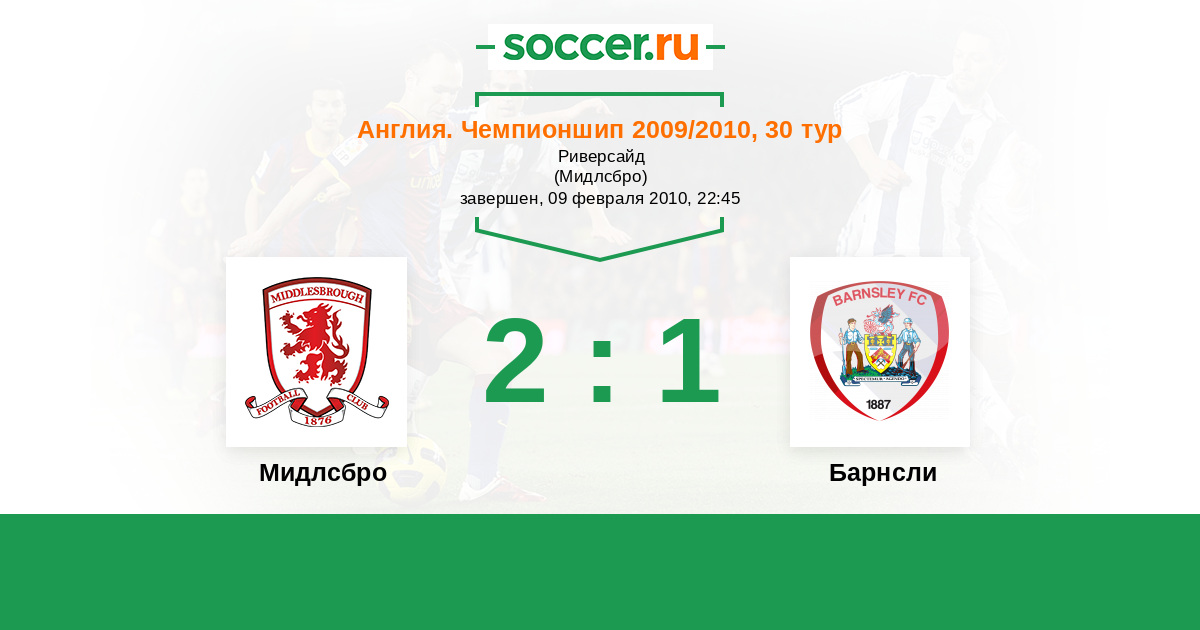 Англия. Чемпионшип 28.12.2009 Барнсли Логотип футбольный клуб Барнсли 2:1 Логотип футбольный клуб Мидлсбро Мидлсбро