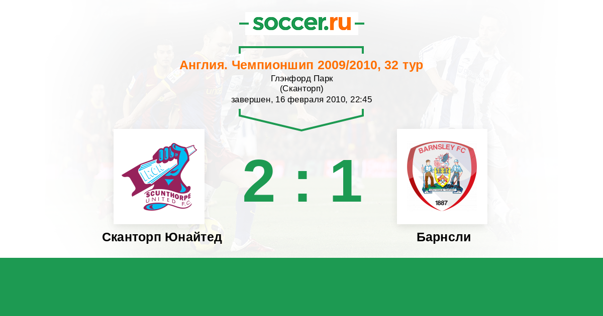 Англия. Чемпионшип 09.12.2009 Барнсли Логотип футбольный клуб Барнсли 1:1 Логотип футбольный клуб Сканторп Юнайтед Сканторп Юнайтед
