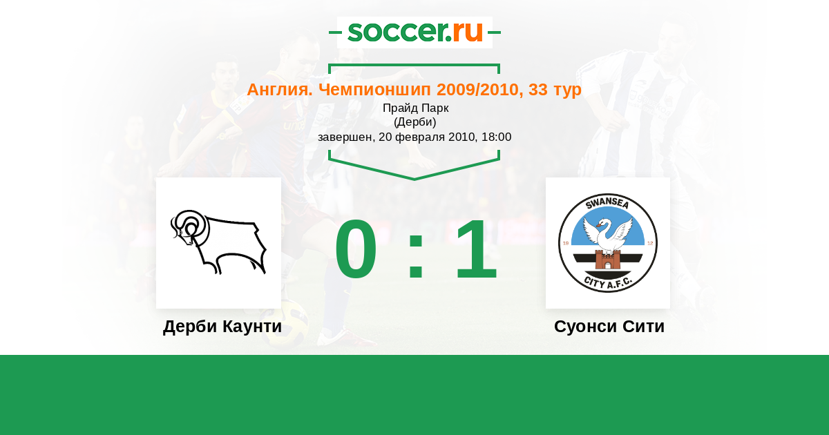 Англия. Чемпионшип 20.11.2009 Суонси Сити Логотип футбольный клуб Суонси Сити 1:0 Логотип футбольный клуб Дерби Каунти Дерби Каунти